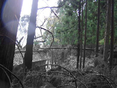 薬師堂裏は川になっていました。大きな杉の木が薬師堂に向かって倒れていました。