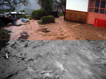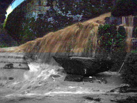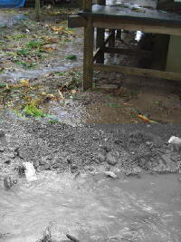 危機一髪で浸水を免れました。しかし、西側の裏山の谷水が鉄砲水となり、
