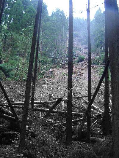 お堂に向かって沢山倒れており、山崩れがあったことを確信しましたが、