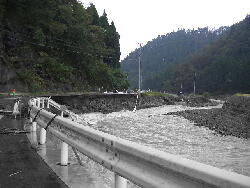 そして、通勤です。椿色の県道が流され、通行止めになっていました。