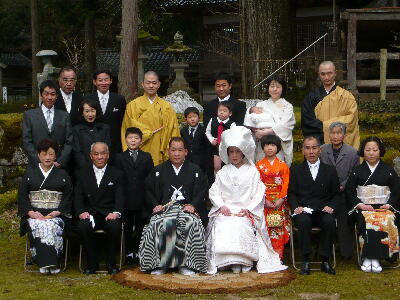 無事、厳かな結婚式も終わり、回廊にて記念撮影