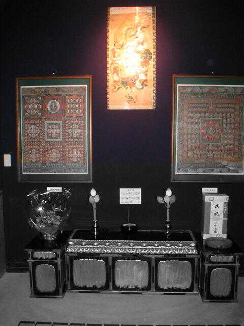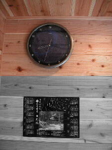 ホール内には、岡倉先生の額とCD、コスモサイン、カレンダーなどを展示。