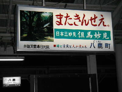 八鹿町の玄関、八鹿駅の掲示板です。但馬妙見日光院の風景がここにもあります。