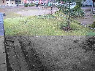黄金のじゅうたんが色あせたので、境内の模様替えをしました。
