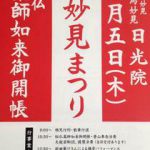 2012年6月14日 / 最終更新日 : 2020年3月16日 peanuts 今日の一枚 お知らせ 平成24年6月13日 但馬妙見日光院 第五十二世 傳灯大阿闍梨 光順大和上が遷化されました。ご縁のありました全ての皆様に感謝申し上げます。 6月15日 午後7時より、日光院本坊に於いてお通夜の儀6月16日 午後1時より、 […]